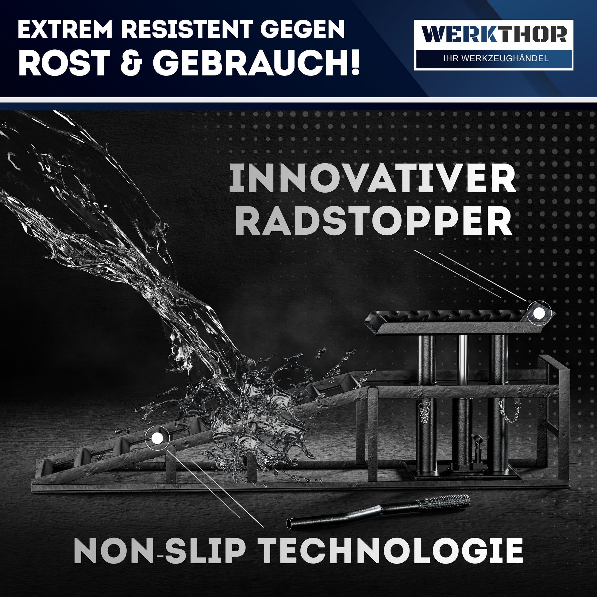 - HÖHENVERSTELLBAR & SICHER – Mit den WERKTHOR hydraulischen Auffahrrampen hebst du Fahrzeuge zuverlässig an. Dank integriertem Hydrauliksystem kannst du die Höhe von 270 bis 375 mm variabel einstellen – das eingebaute Sicherheits- und Überdruckventil sorgt jederzeit für maximale Kontrolle.